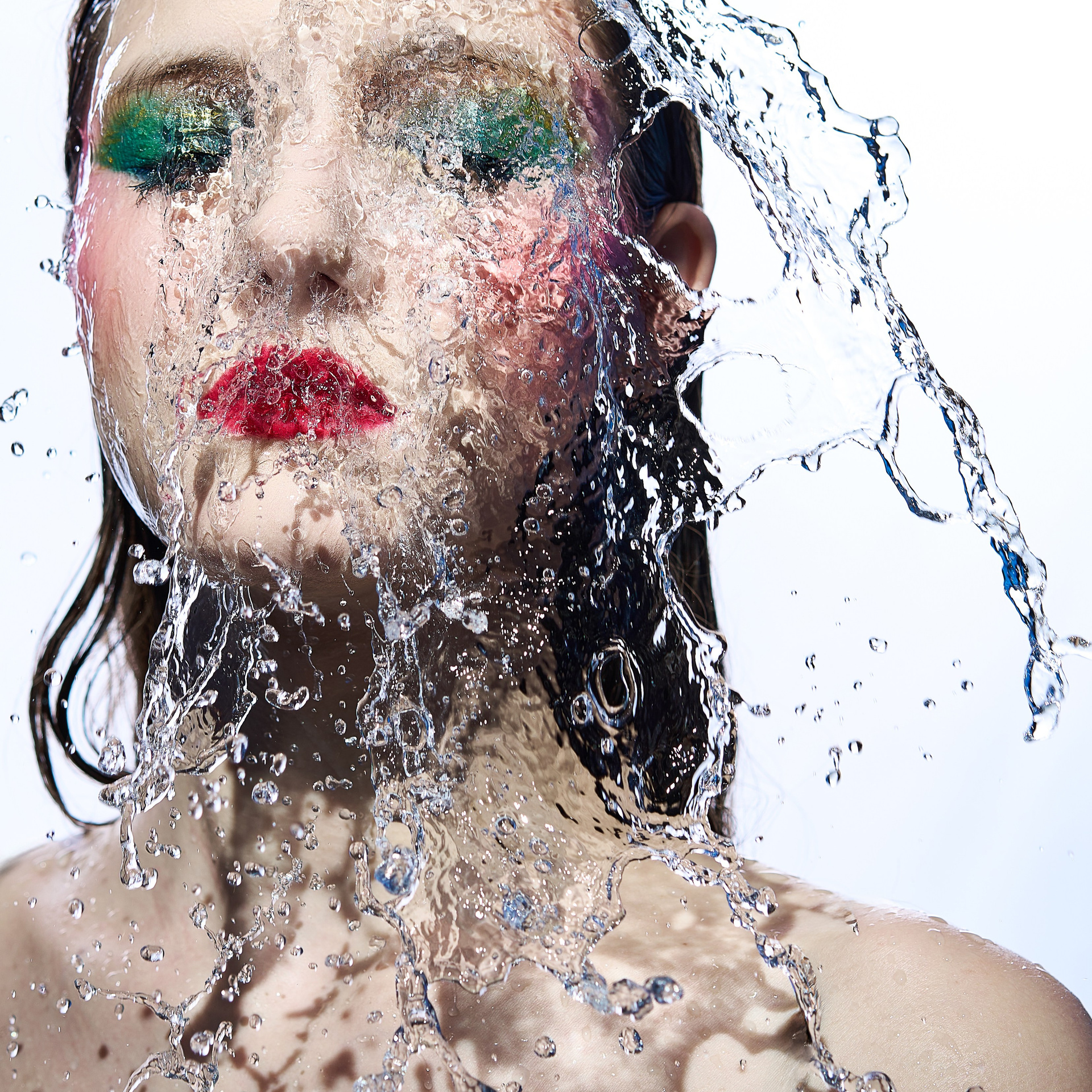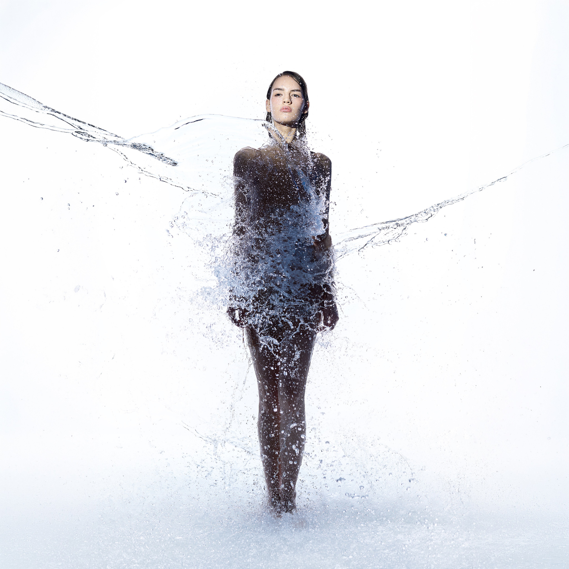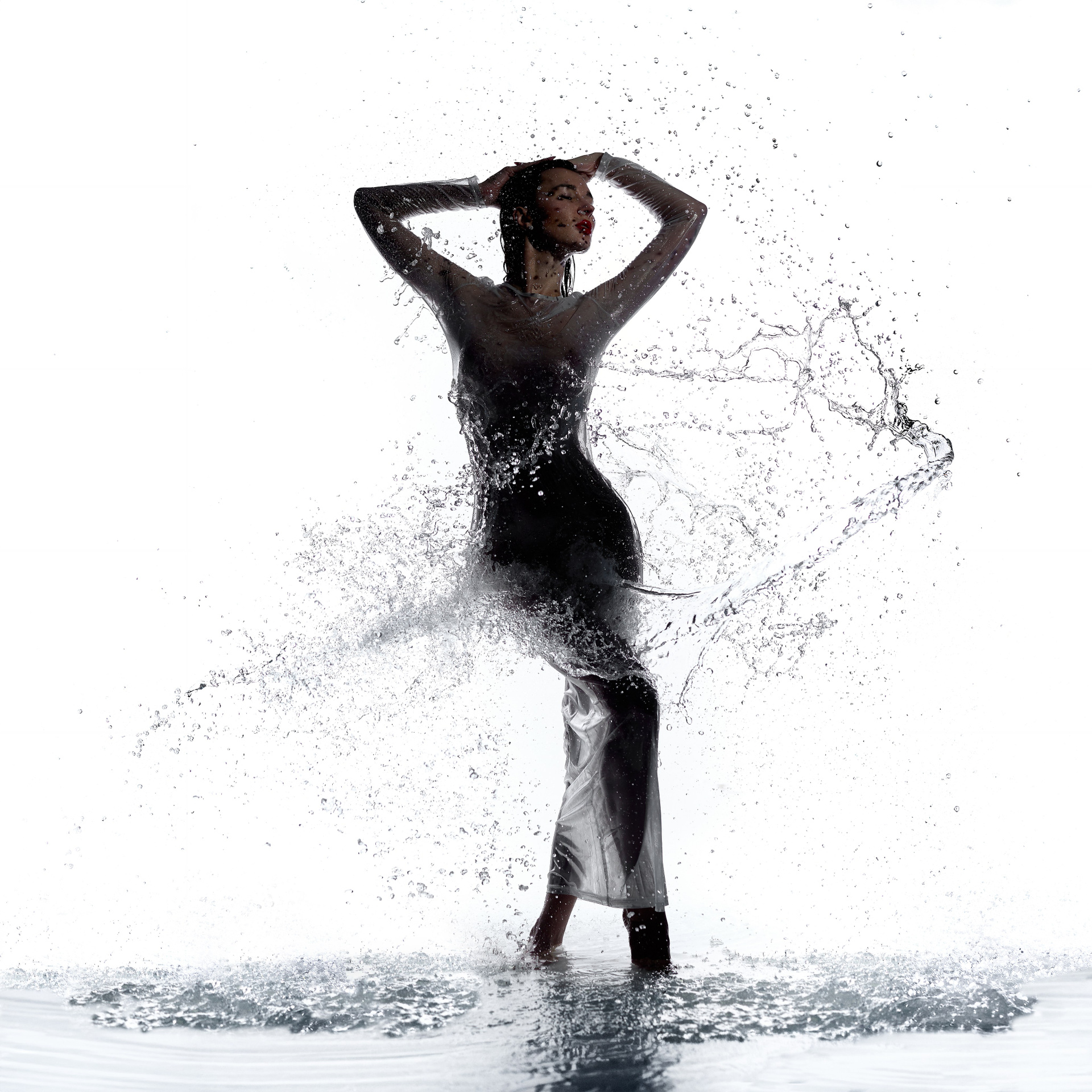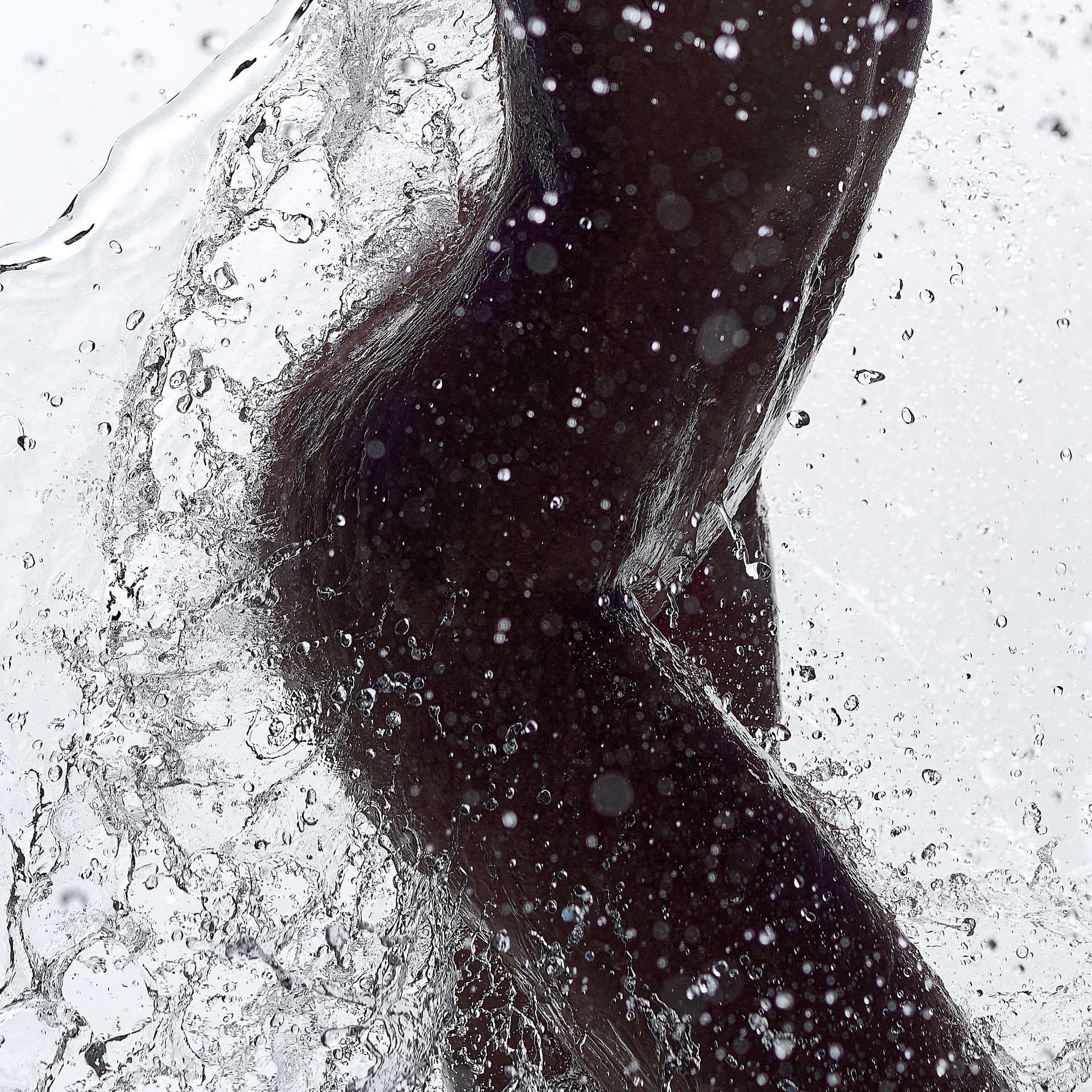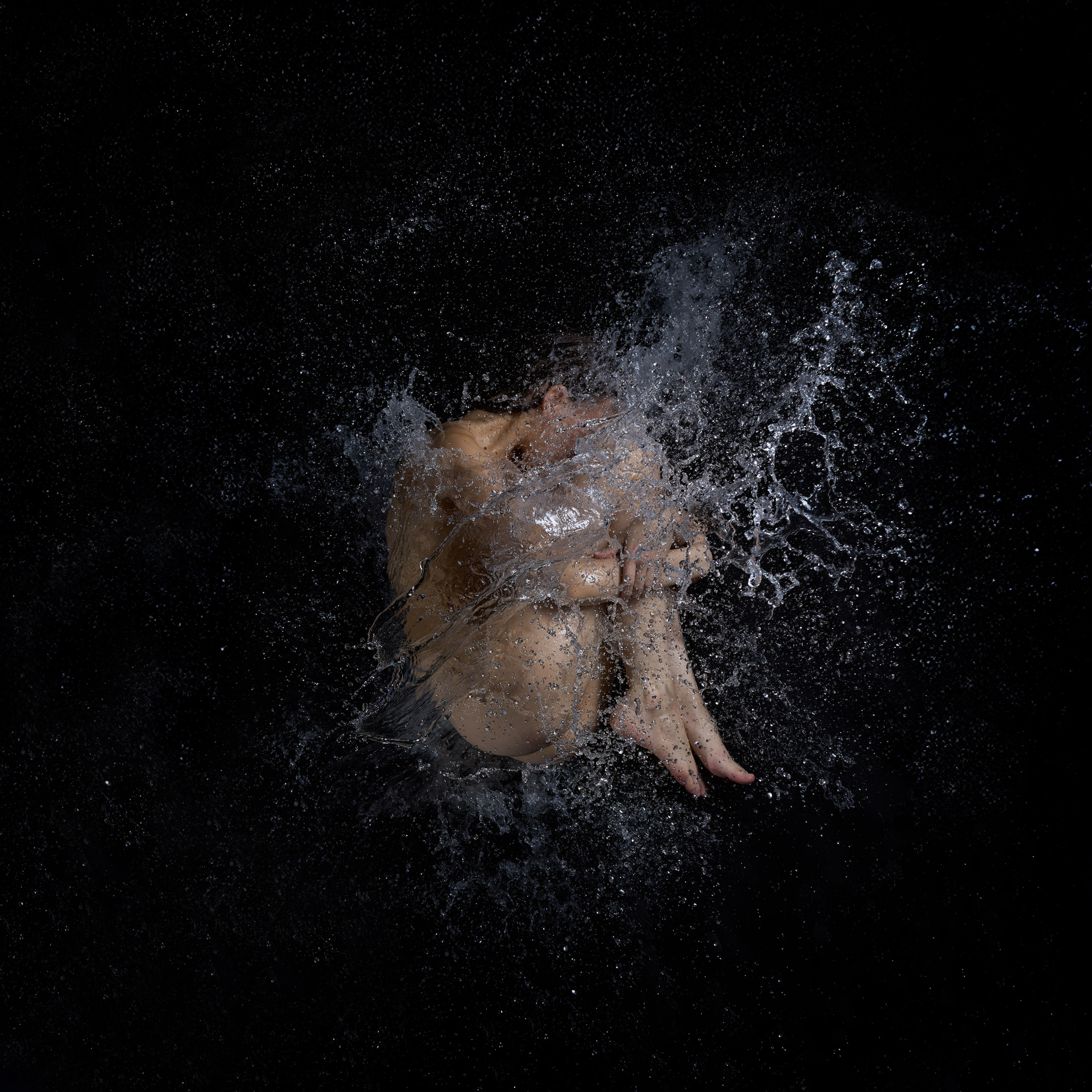 Вода — идеальный пример «застывшей жидкости». В момент всплеска она обретает резкие, острые грани, напоминающие битое стекло или прозрачный камень. В этой серии аморфизм достигает своего пика: текучесть становится статикой. Мы видим каждую каплю как отдельный замерший мир, который в реальности существовал лишь сотую долю секунды. Это попытка остановить океан в одном жесте.