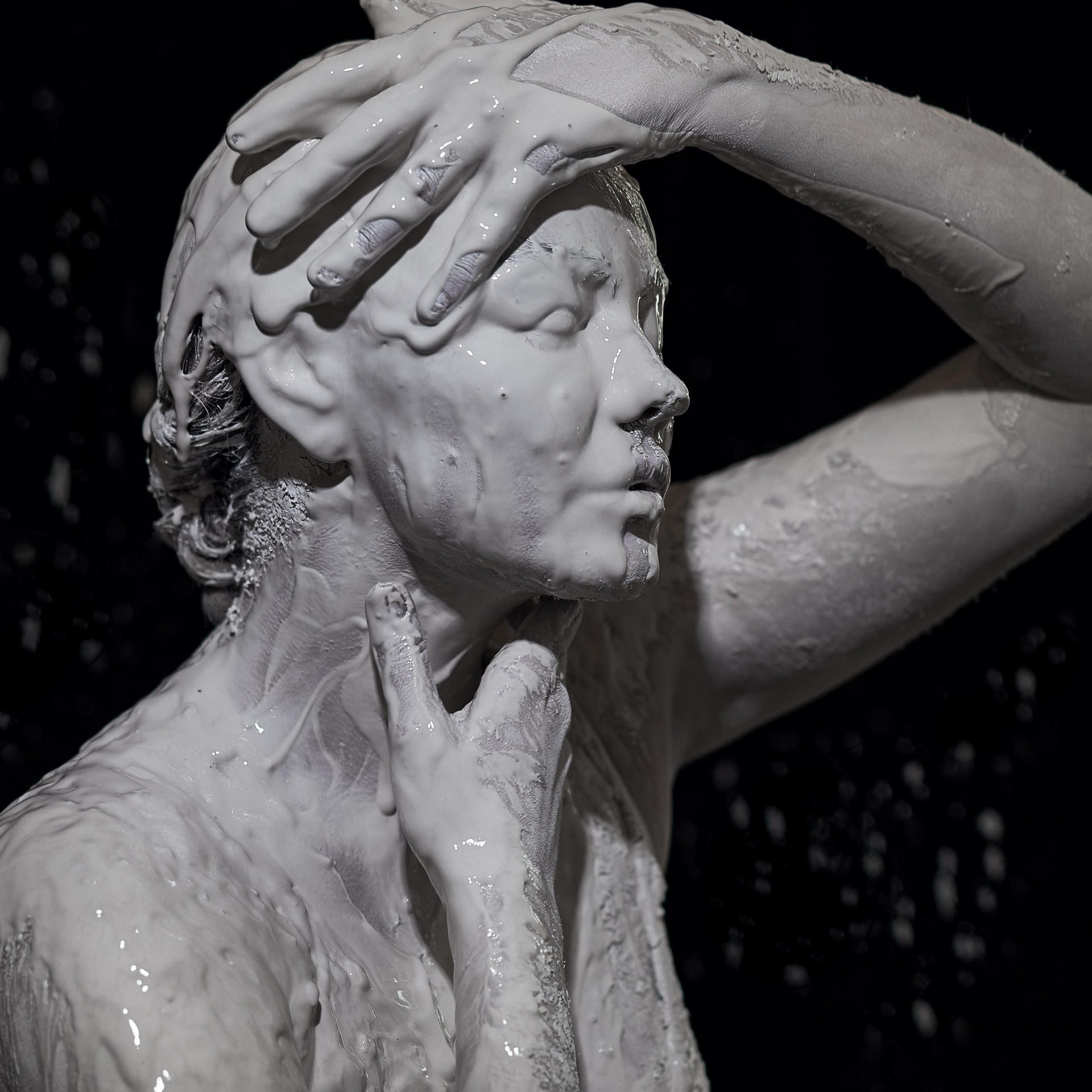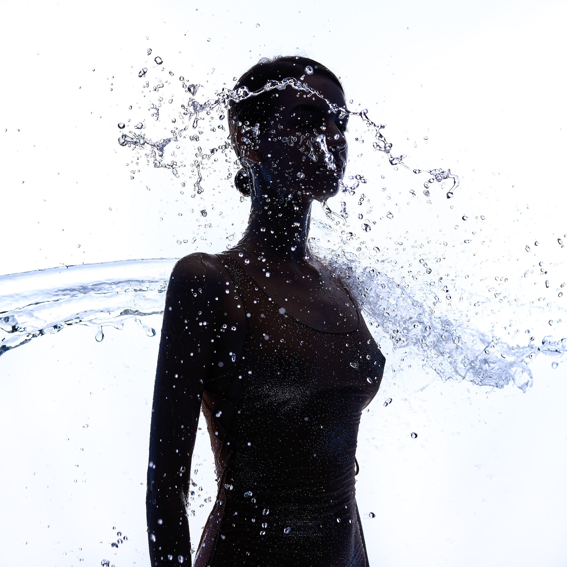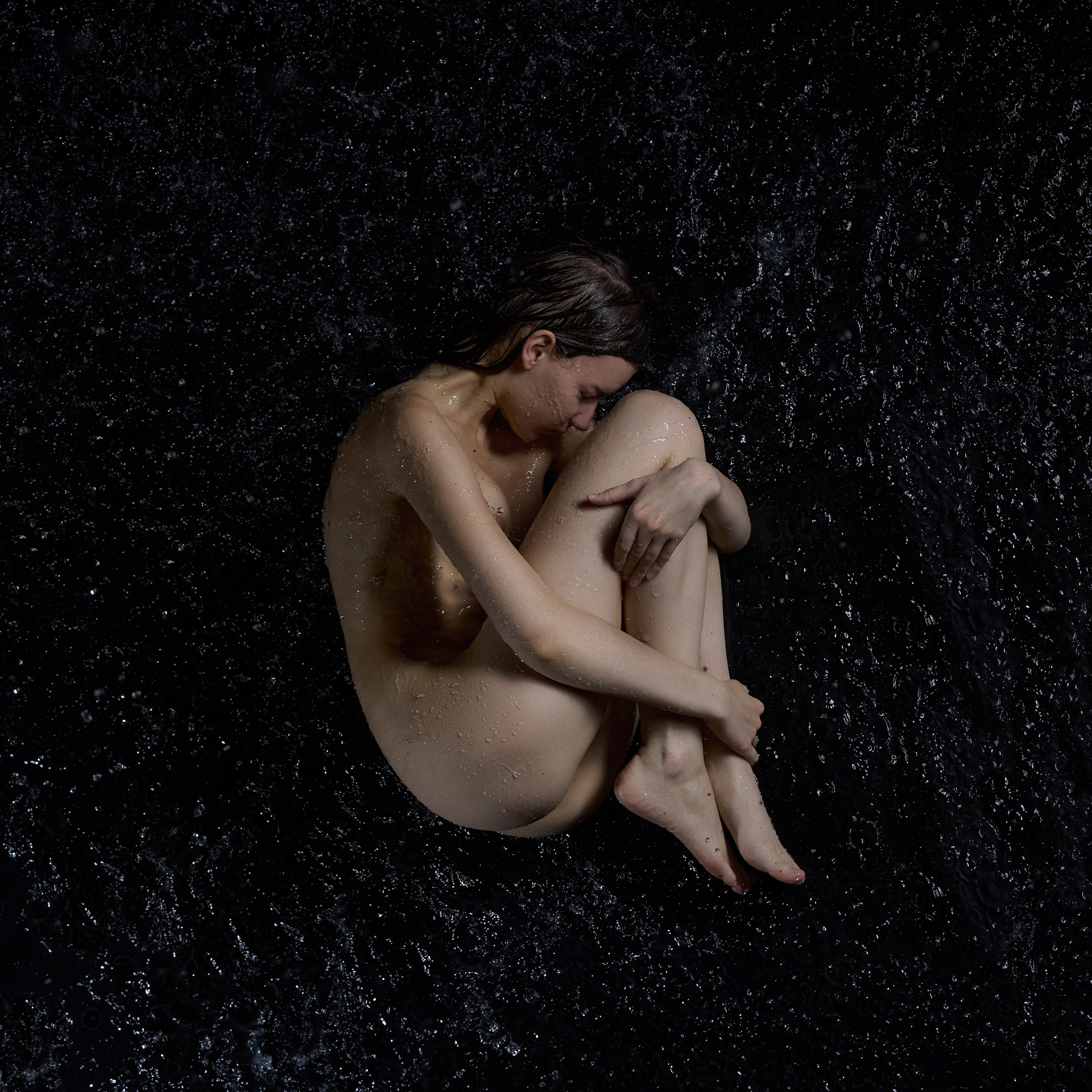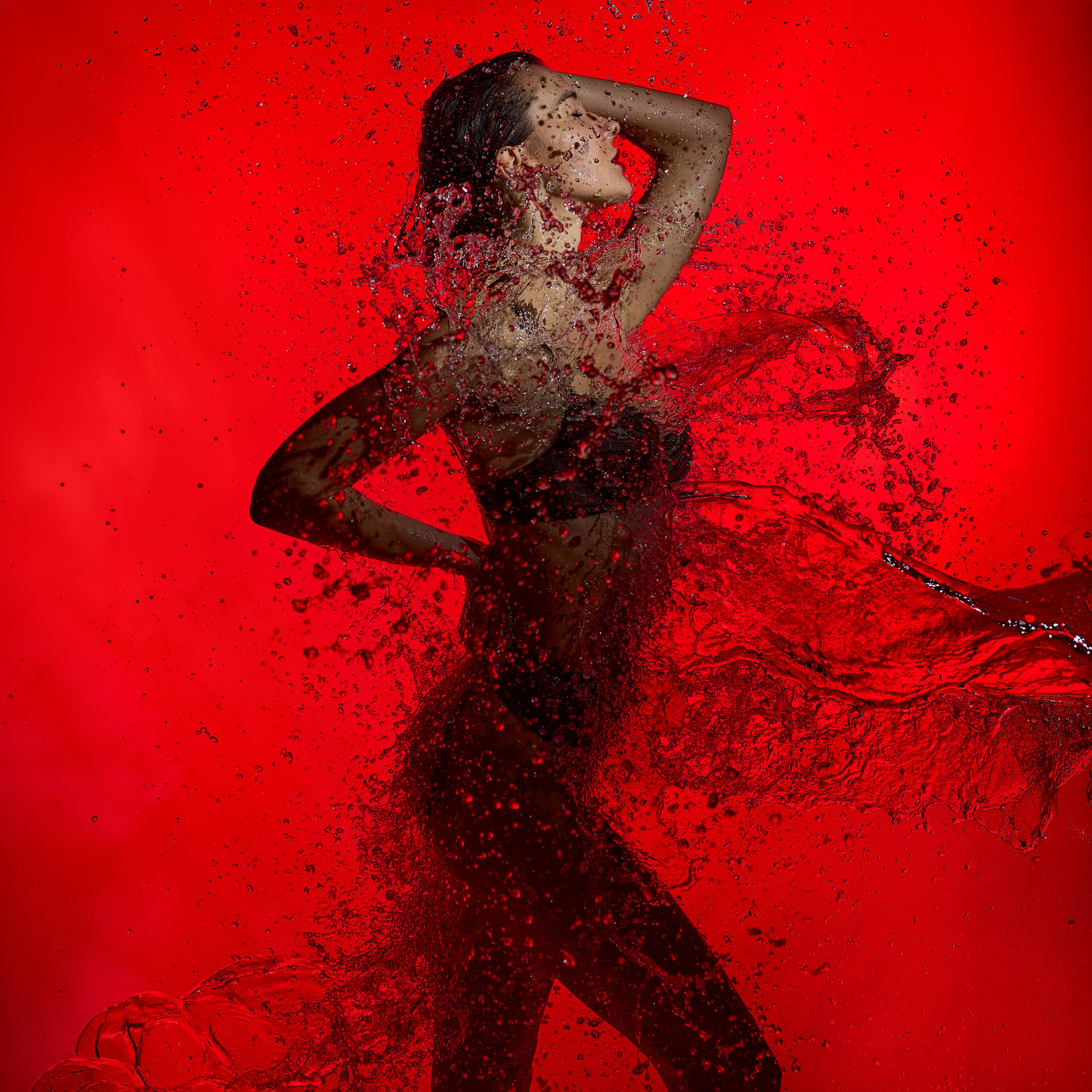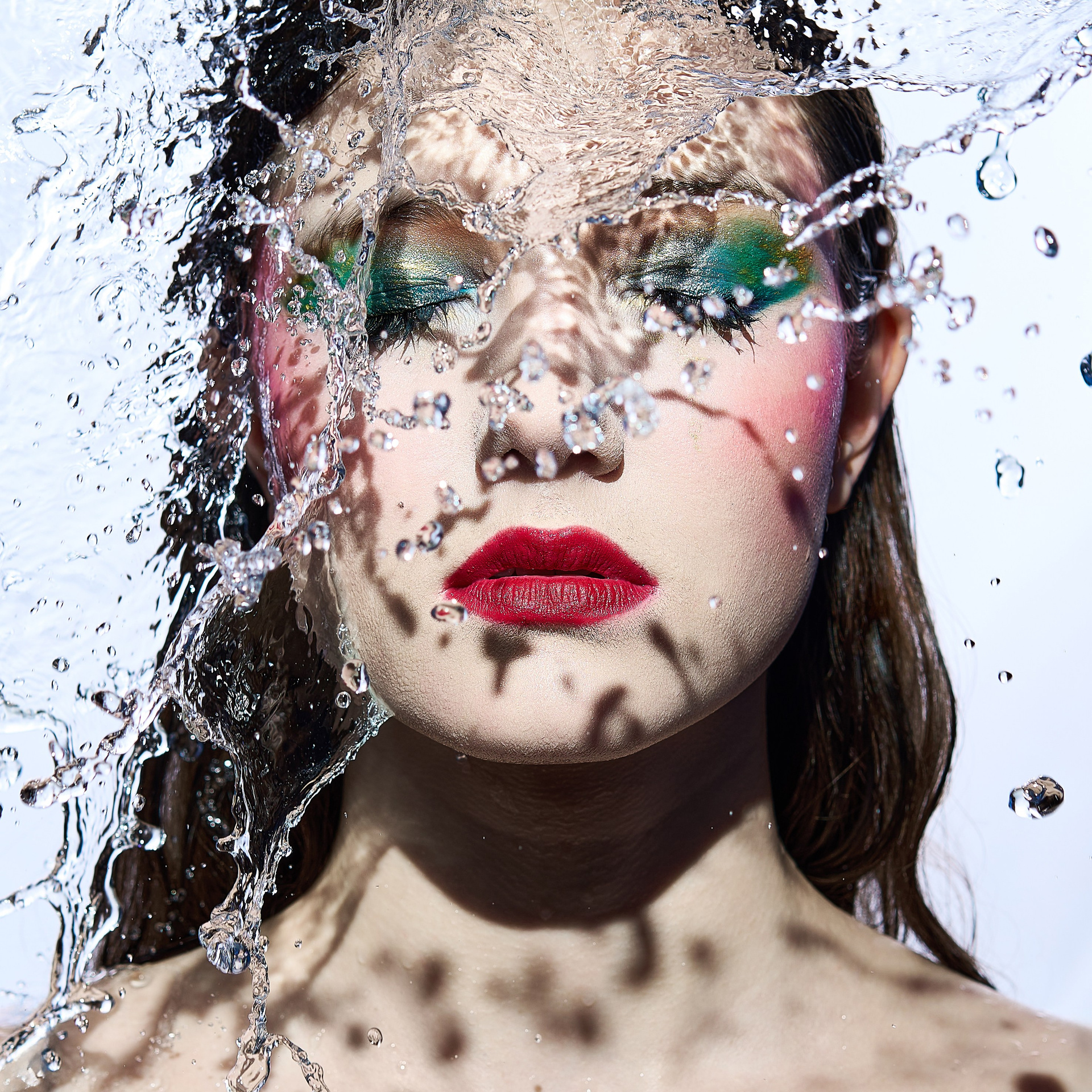 Вода — идеальный пример «застывшей жидкости». В момент всплеска она обретает резкие, острые грани, напоминающие битое стекло или прозрачный камень. В этой серии аморфизм достигает своего пика: текучесть становится статикой. Мы видим каждую каплю как отдельный замерший мир, который в реальности существовал лишь сотую долю секунды. Это попытка остановить океан в одном жесте.