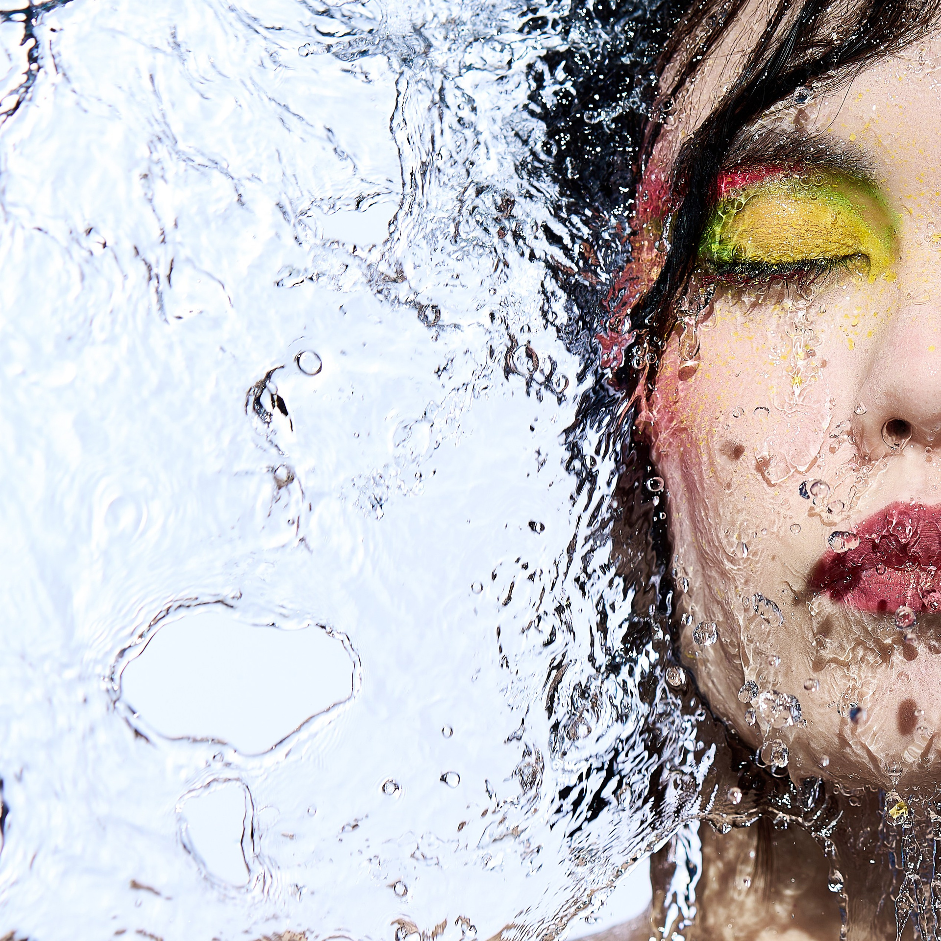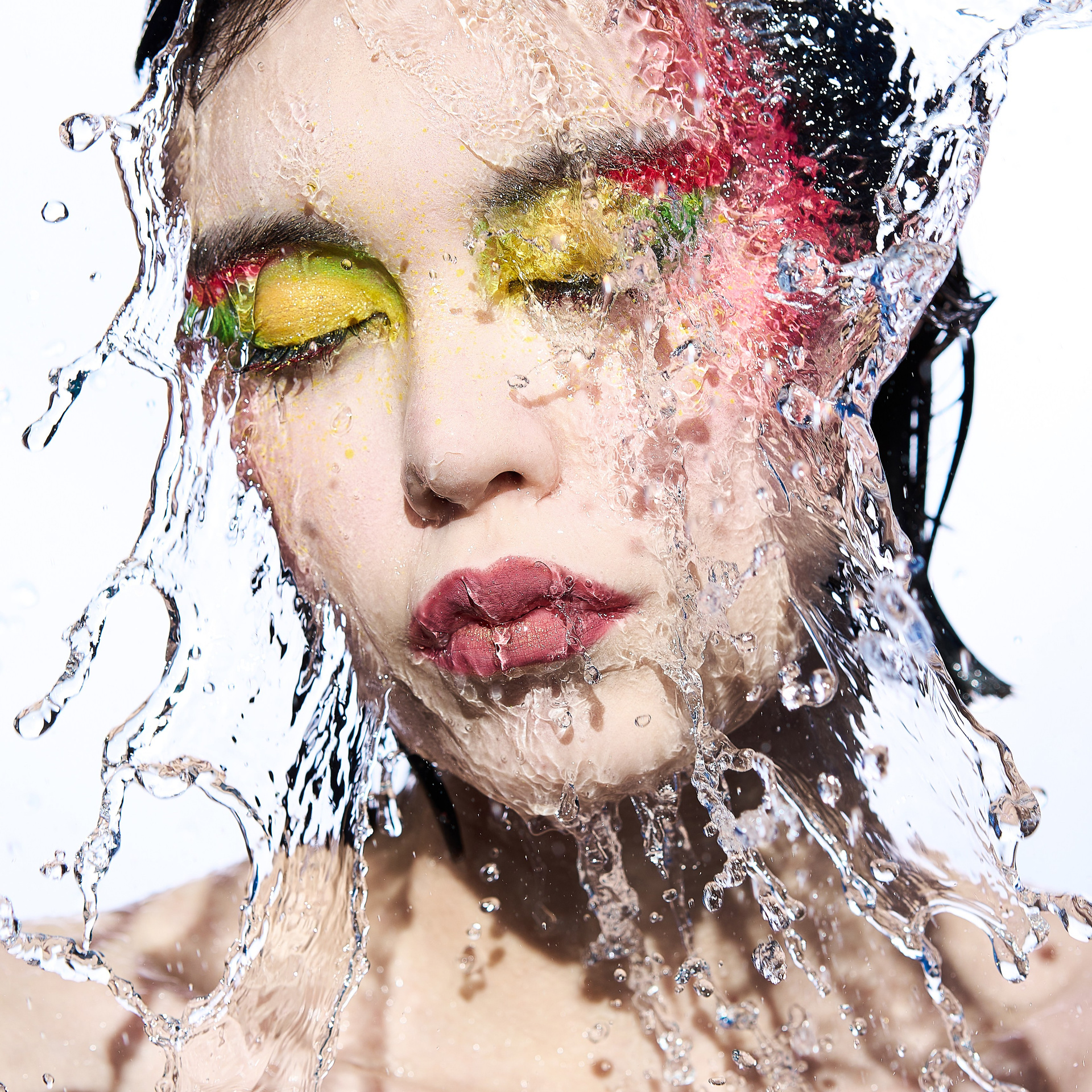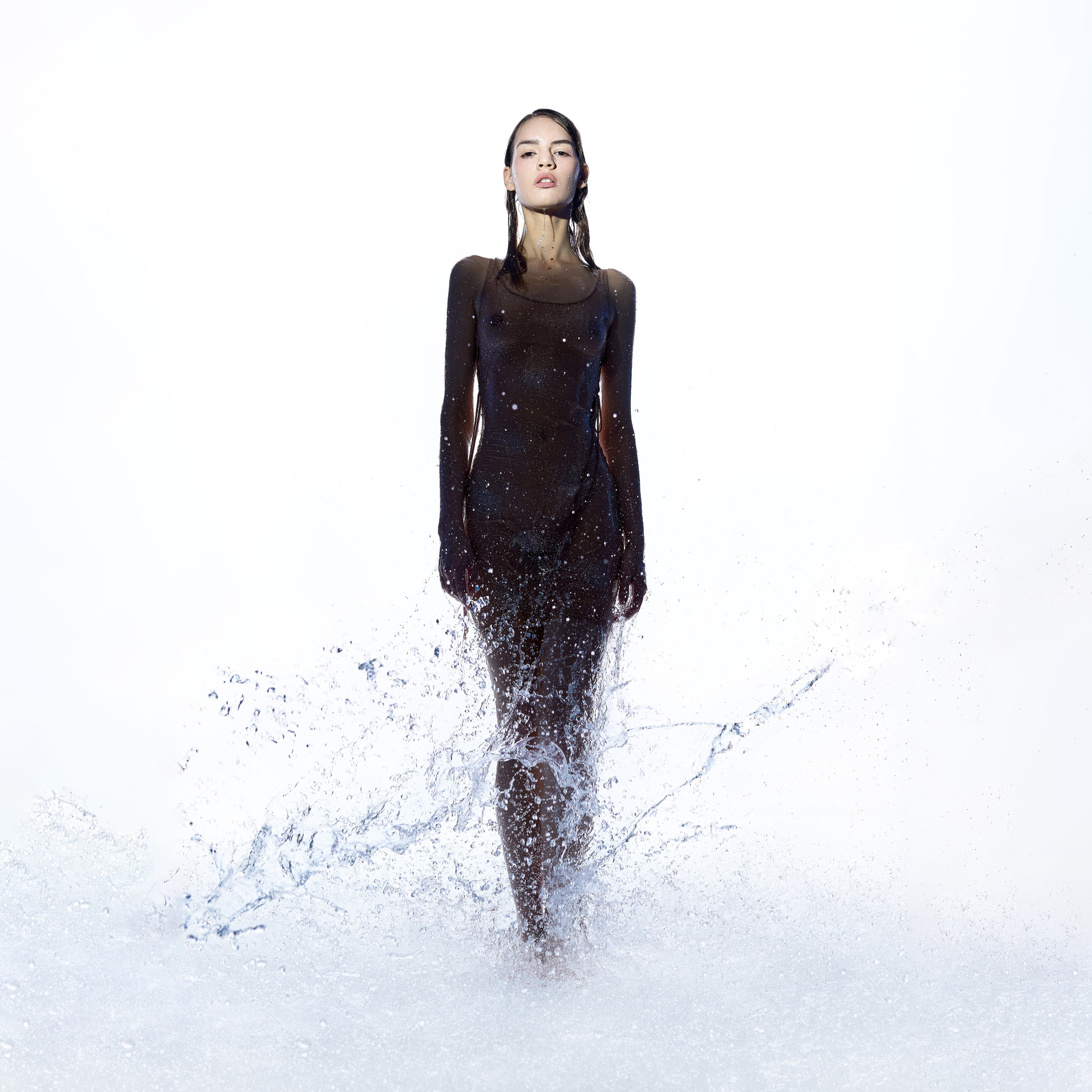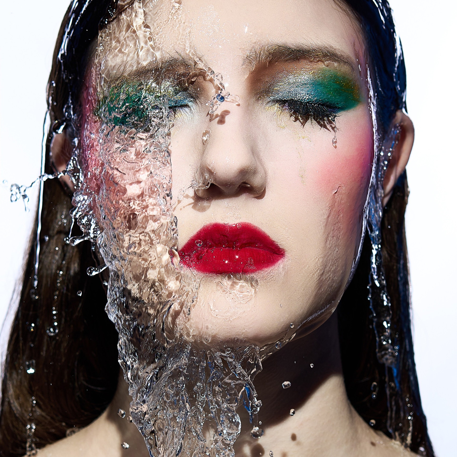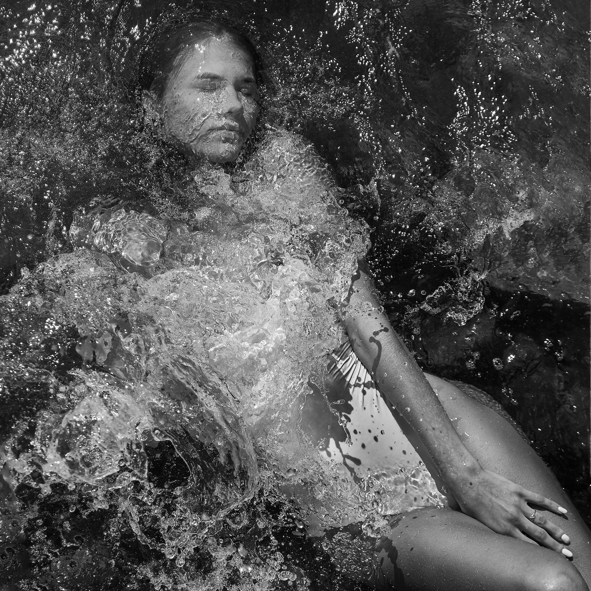 Вода — идеальный пример «застывшей жидкости». В момент всплеска она обретает резкие, острые грани, напоминающие битое стекло или прозрачный камень. В этой серии аморфизм достигает своего пика: текучесть становится статикой. Мы видим каждую каплю как отдельный замерший мир, который в реальности существовал лишь сотую долю секунды. Это попытка остановить океан в одном жесте.