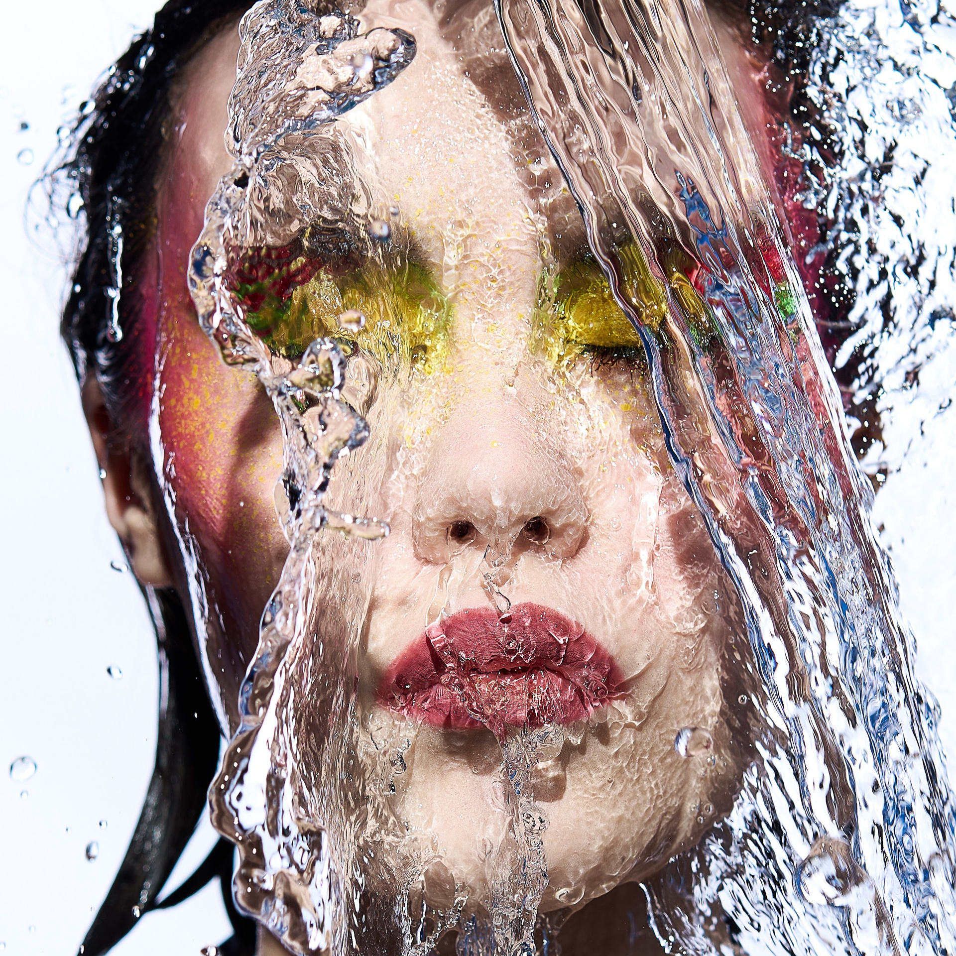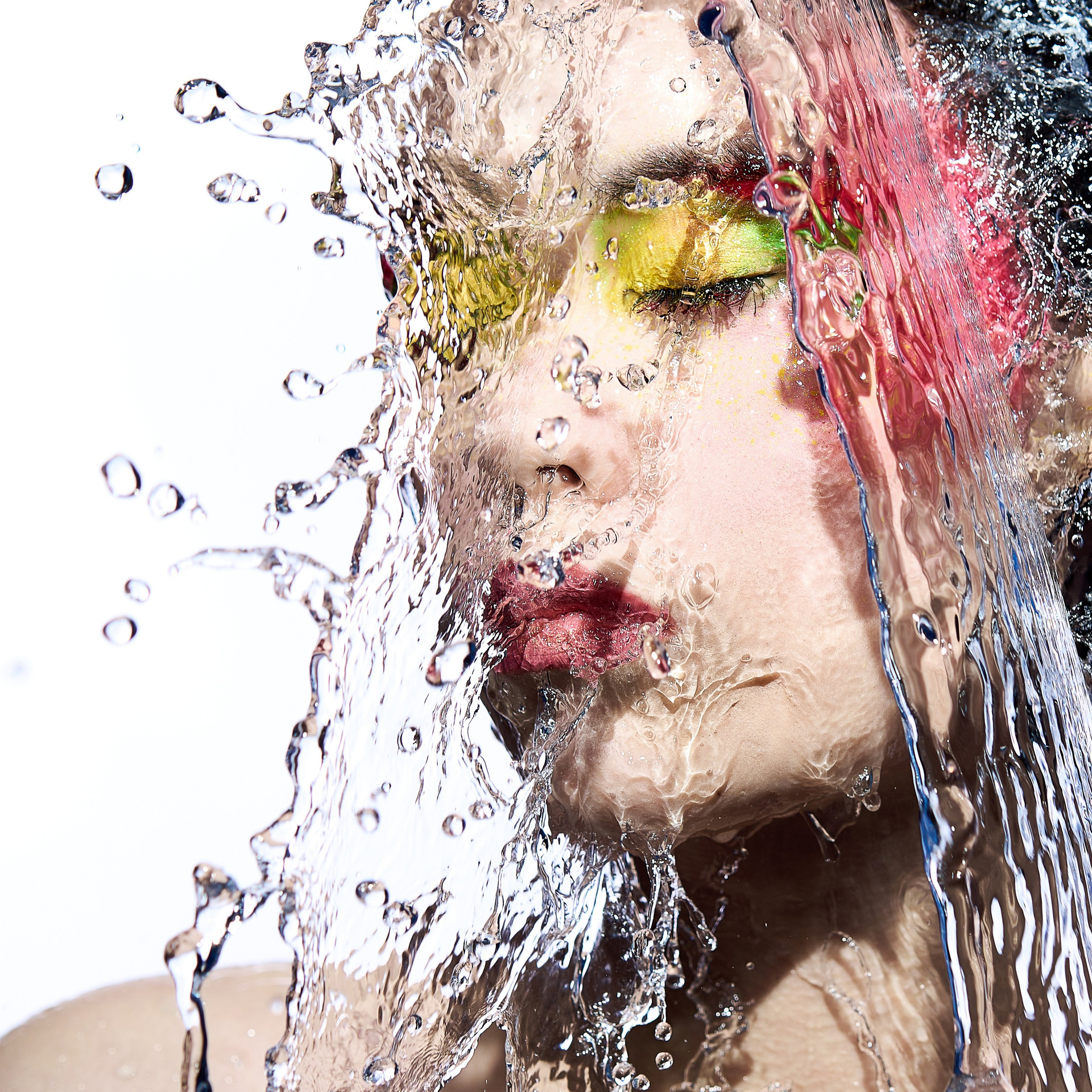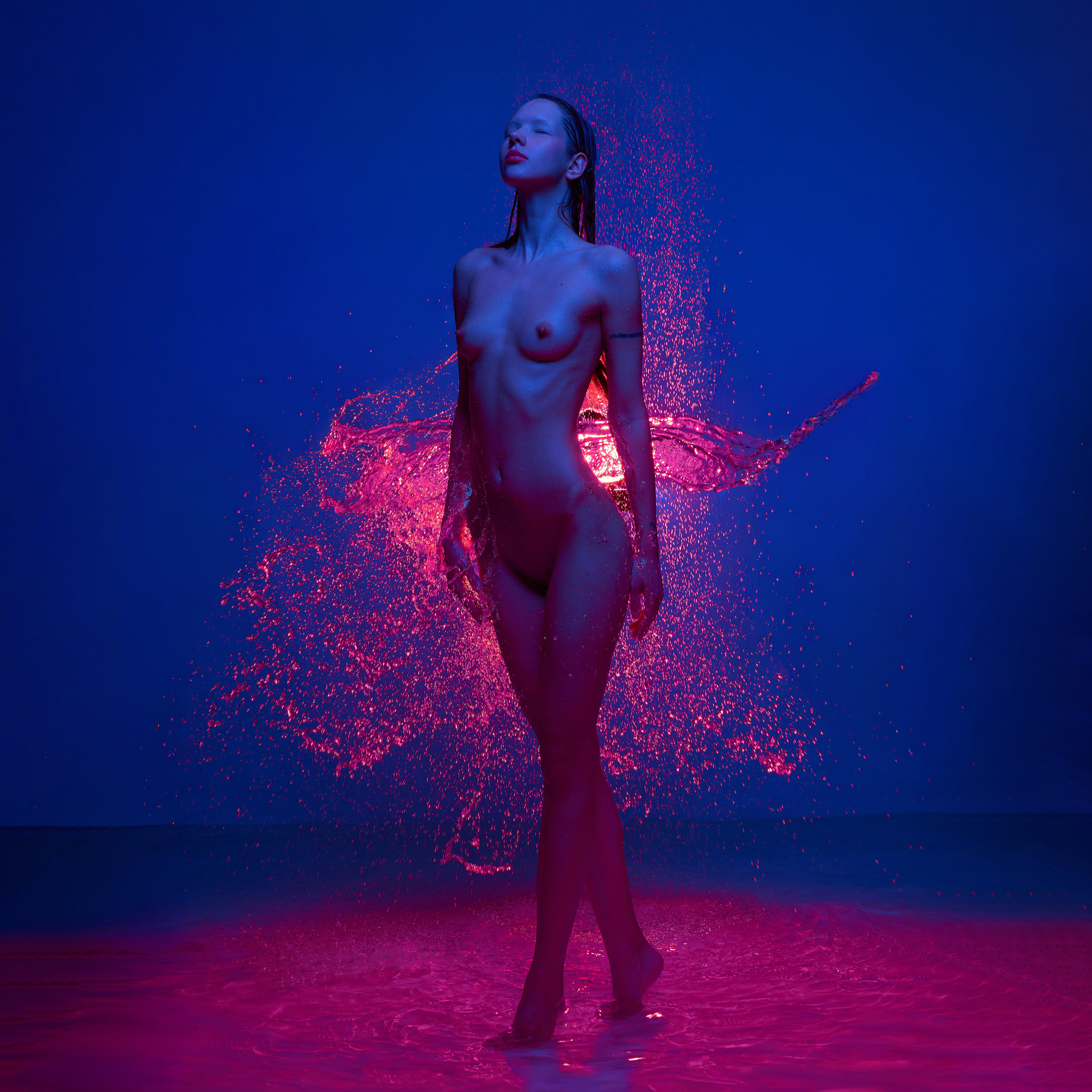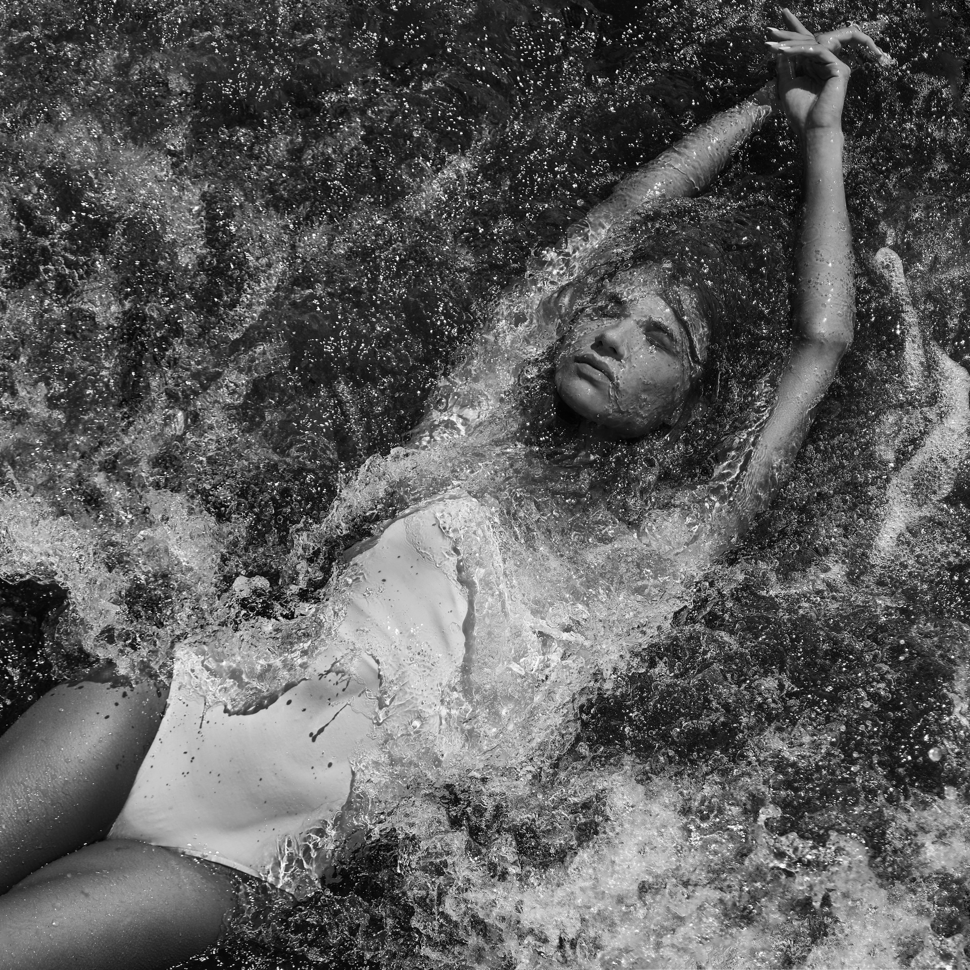 Вода — идеальный пример «застывшей жидкости». В момент всплеска она обретает резкие, острые грани, напоминающие битое стекло или прозрачный камень. В этой серии аморфизм достигает своего пика: текучесть становится статикой. Мы видим каждую каплю как отдельный замерший мир, который в реальности существовал лишь сотую долю секунды. Это попытка остановить океан в одном жесте.