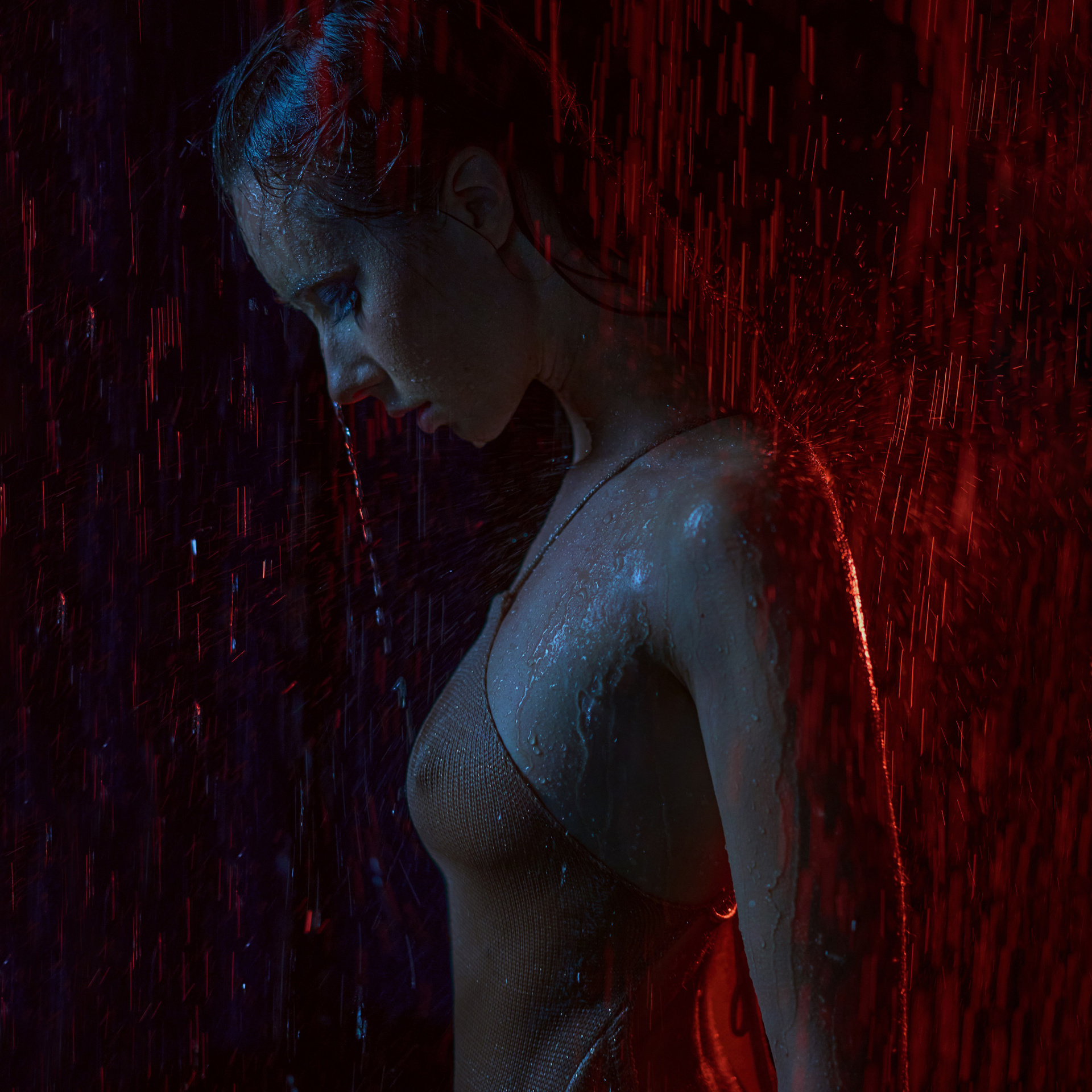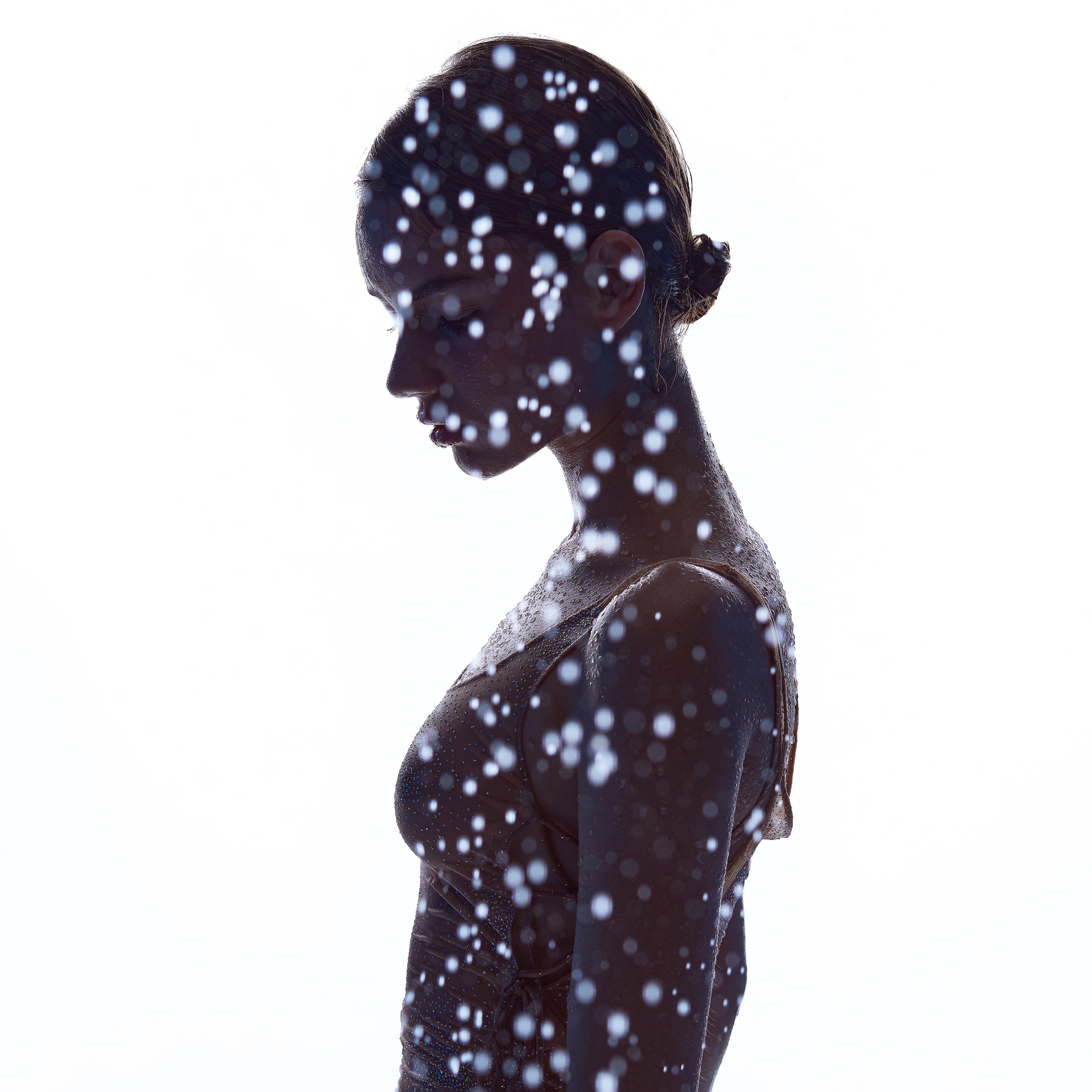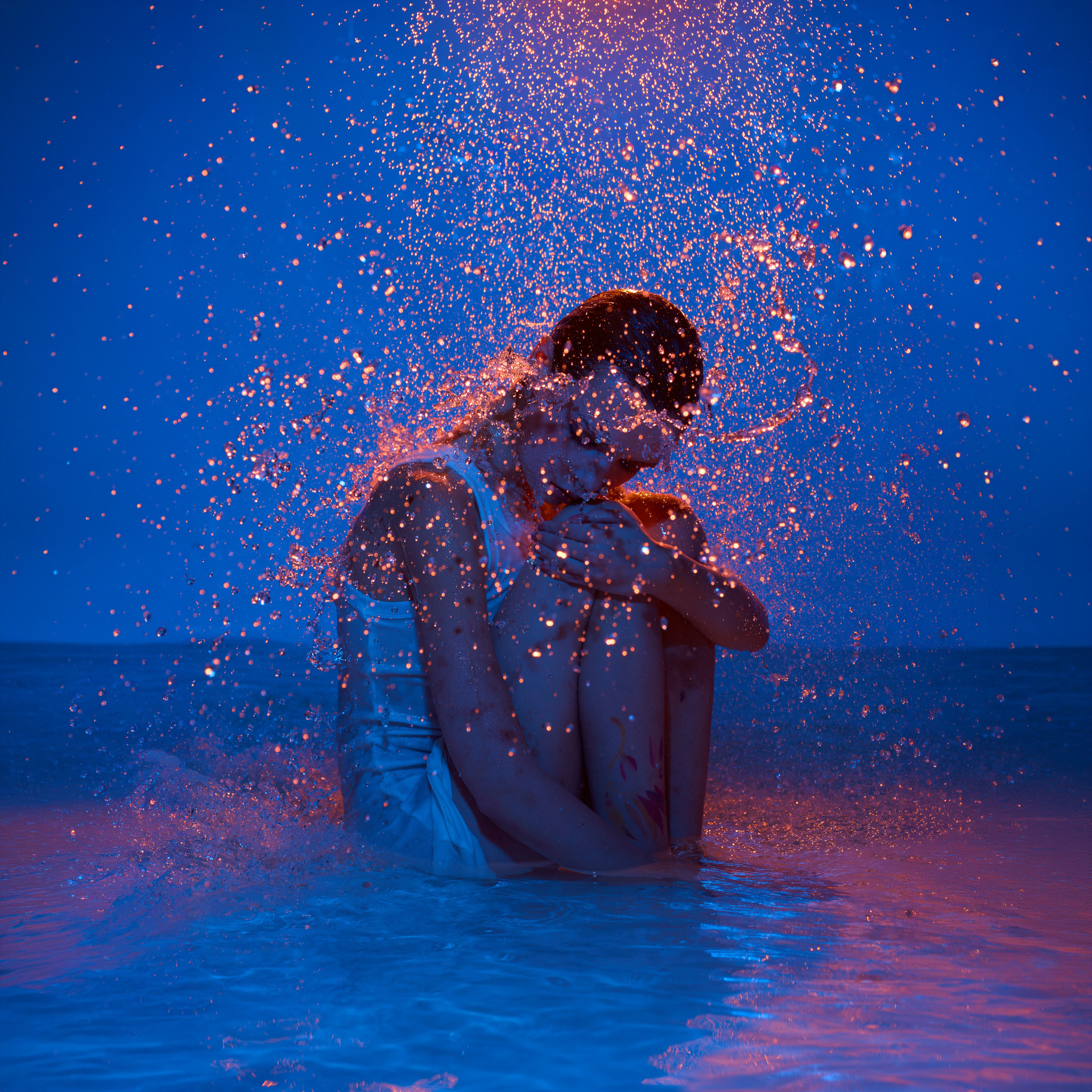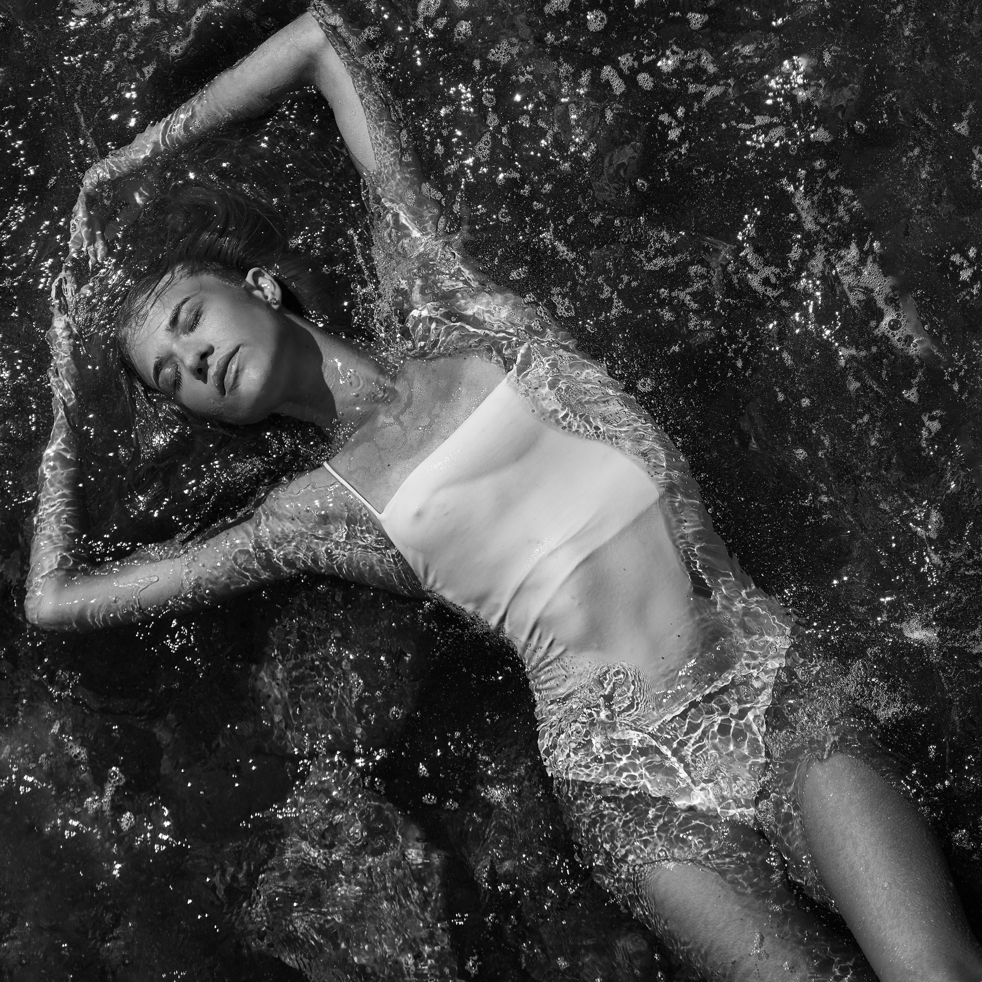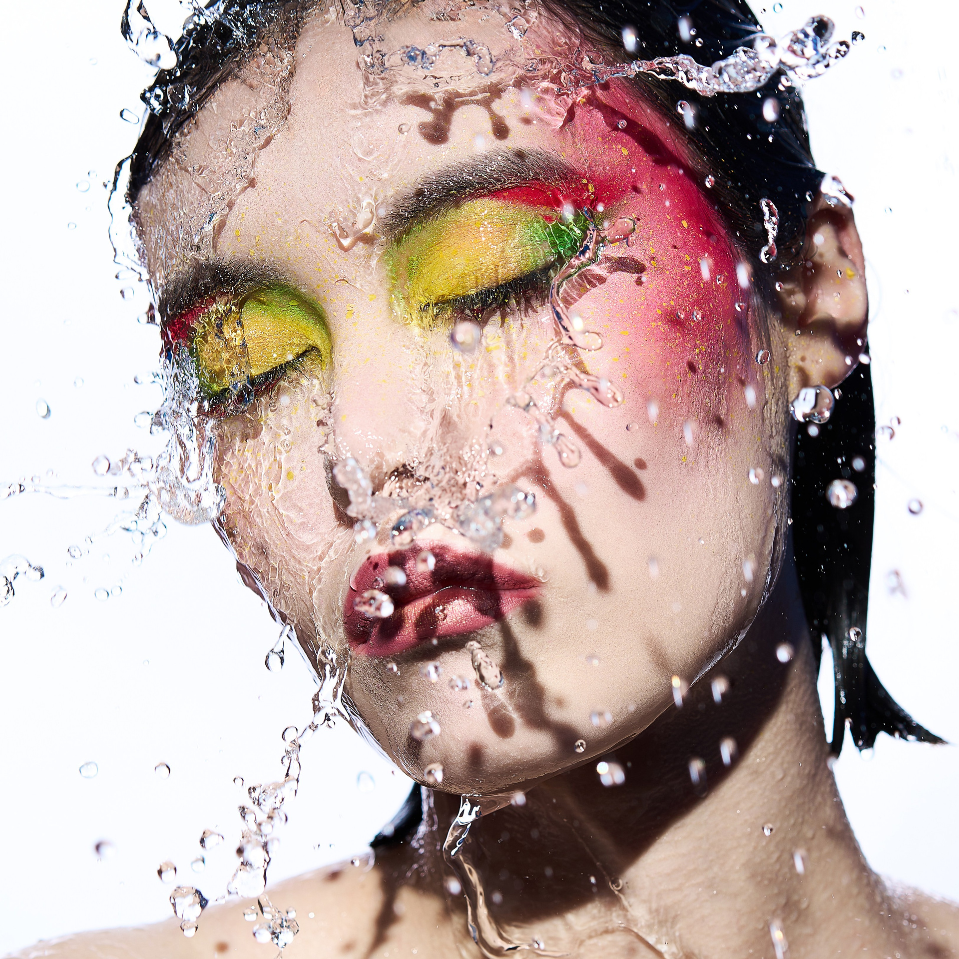 Вода — идеальный пример «застывшей жидкости». В момент всплеска она обретает резкие, острые грани, напоминающие битое стекло или прозрачный камень. В этой серии аморфизм достигает своего пика: текучесть становится статикой. Мы видим каждую каплю как отдельный замерший мир, который в реальности существовал лишь сотую долю секунды. Это попытка остановить океан в одном жесте.
